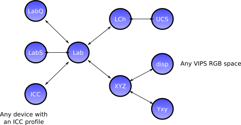 This figure shows how the VIPS colour spaces interconvert: